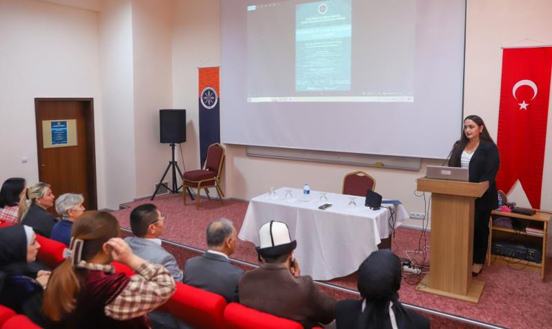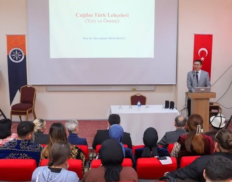 Bölümün öğretim üyesi Prof. Dr. Mayrambek Orozobayev “Çağdaş Türk lehçelerinin önemi ve yeri” konulu konferans vererek, Türk dillerinin veya lehçelerinin tasnifinden, günümüzde Türk devletleri teşkilatının faaliyetlerinden bahsetti.